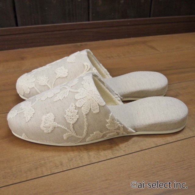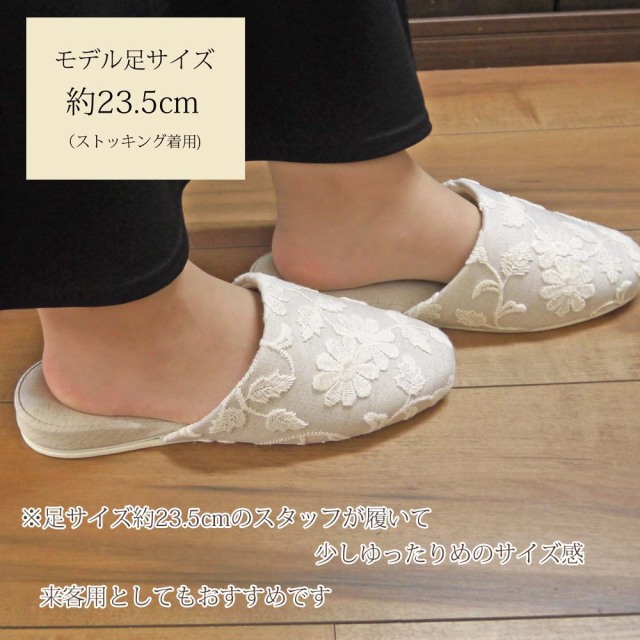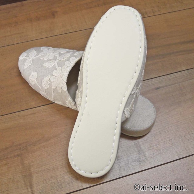 ■花柄刺繍のチュールレースをスリッパに縫い付けてあります。