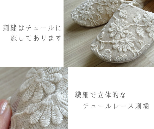 ナチュラルで清楚なデザインのバブーシュセット。