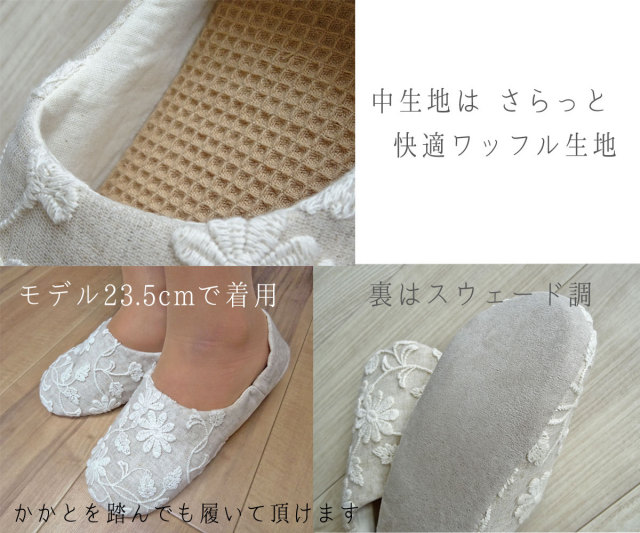 中底:綿素材のワッフル織だから夏でも足裏がベタ付かず、冬は温かい♪