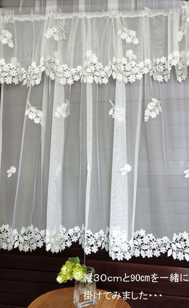 (検索用)刺繍 ししゅう 小花 花柄 白っぽい 明るい色 爽やか ミントグリーン インテリア ヨーロッパ 北欧風 アンティーク家具 サイズバリエーション 細い窓 小さな窓 オーダー 窓まわり オシャレ 目隠し 視線をさえぎる フェミニン 女性 きれい かわいい 柔らかい 上質 上品 透け感 ナチュラル リビング 居間 お手洗い トイレ 洗面所 寝室 子供部屋 キッチン 玄関 つっぱり棒 ポール 模様替え 新調 風水 きれいな縫製 短い丈のカーテン