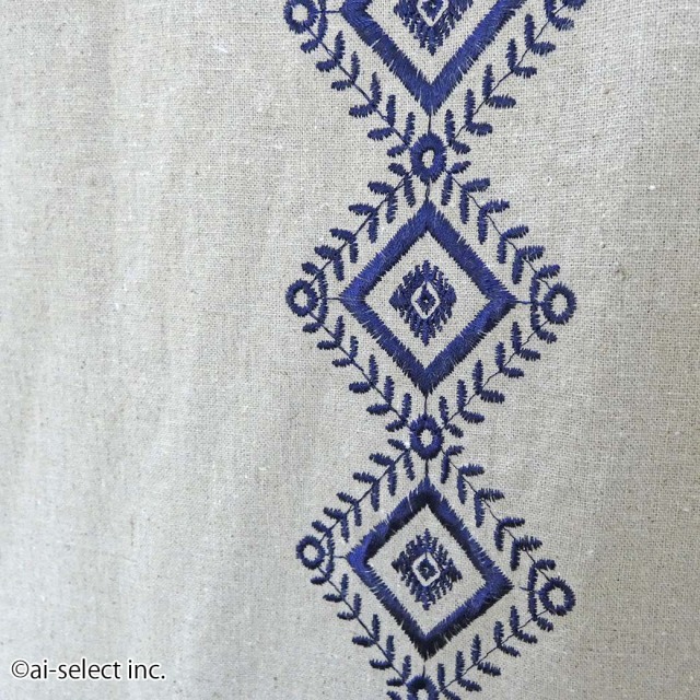 素材本来の色を残したナチュラルな生地に、紺色の糸で紋様をライン状にステッチされています