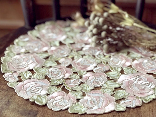 優しい色合いがとってもロマンチックなドイリー♪
