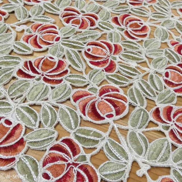 葉と花のデザインが立体的に浮かび上がり、透け感が光をやさしく通します。