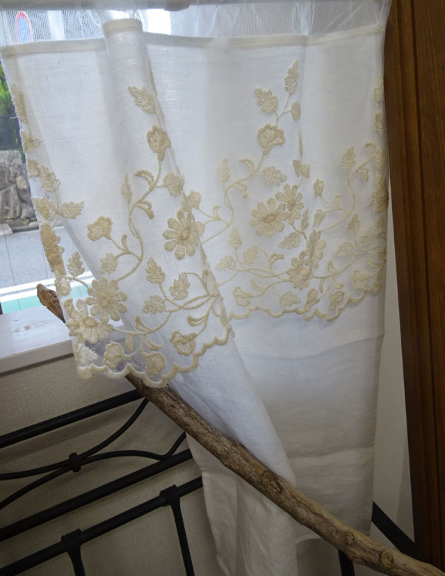 ■素 材;白生地 国産麻 チュールレース ポリエステル100%に綿糸刺繍