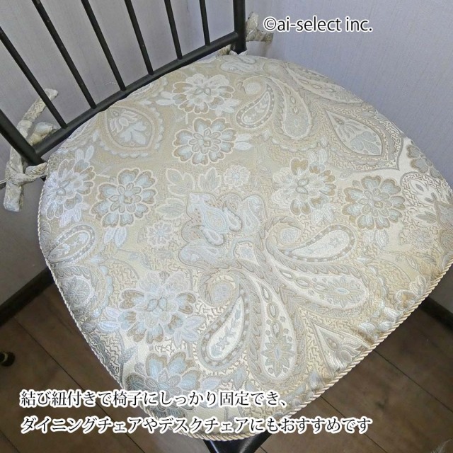 結び紐付きで椅子にしっかり固定でき、ダイニングチェアはもちろん、