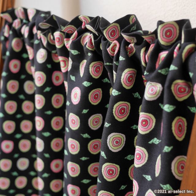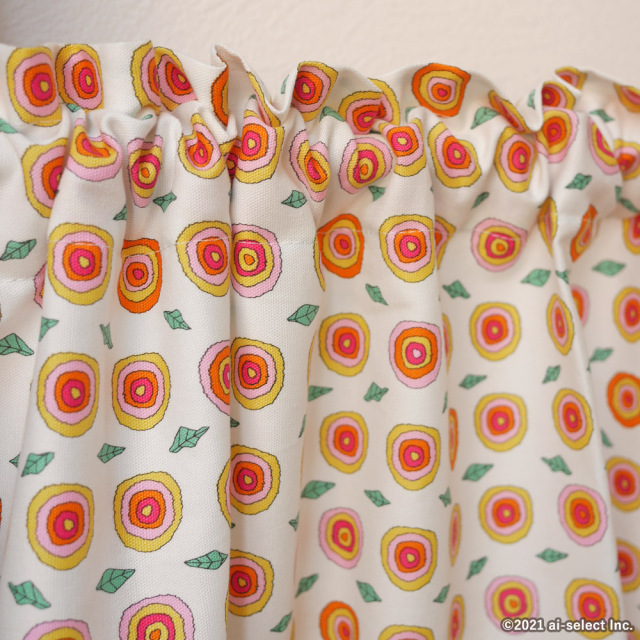 ポップなカラーの花が気分を楽しくさせるカフェカーテン♪